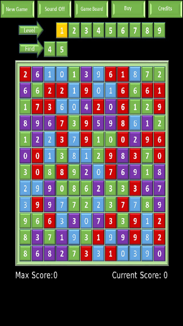 Numbers from 2 to 10 digits are mixed in a 12 x 12 game board. Find them and have fun.