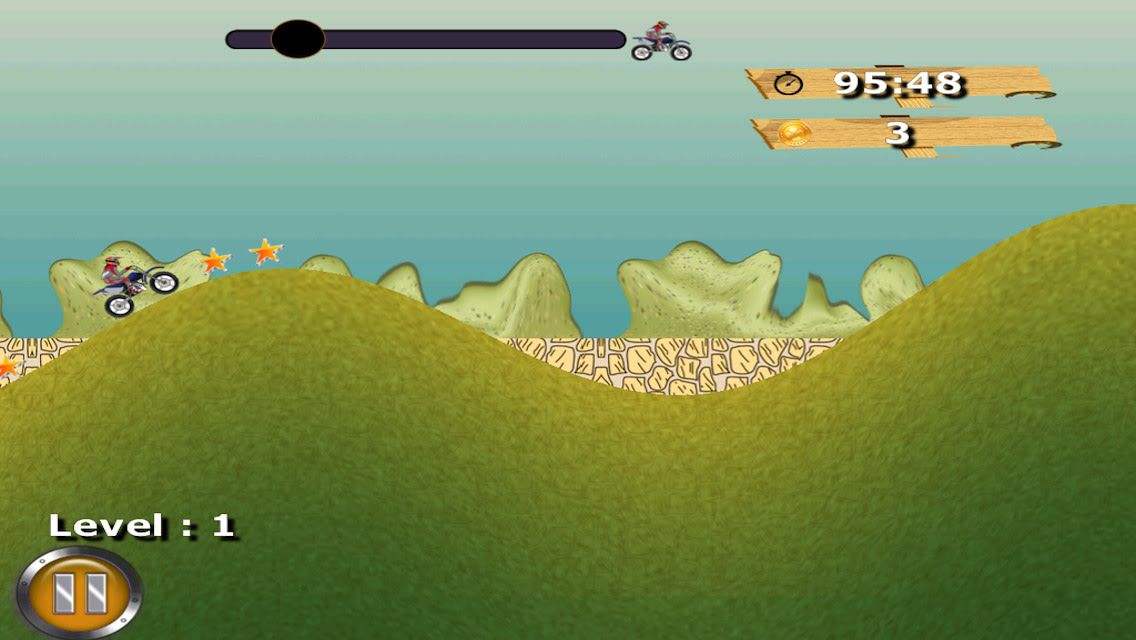 Tap the race for acceleration. You must judge the hills correctly! You're in a race against time. There's plenty of levels that get harder & harder as you level up. Great fun for all ages & motor bike lovers!